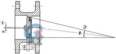 當(dāng)閥門開啟時,蝶板與閥座在關(guān)閉時接觸,利用蝶板偏心1、偏心2脫離閥座,減低了密封副的磨損,磨擦力矩小,開啟靈活。偏心錐面3,使閥門在開啟或關(guān)閉時蝶板能通過閥座內(nèi)孔,實(shí)現(xiàn)接觸密封。另外,錐形蝶板的旋轉(zhuǎn)半徑大于密封副接觸位置的旋轉(zhuǎn)半徑,故蝶板在閥門關(guān)閉時將出現(xiàn)越關(guān)越緊,能夠?qū)崿F(xiàn)自鎖,制止蝶板過位。